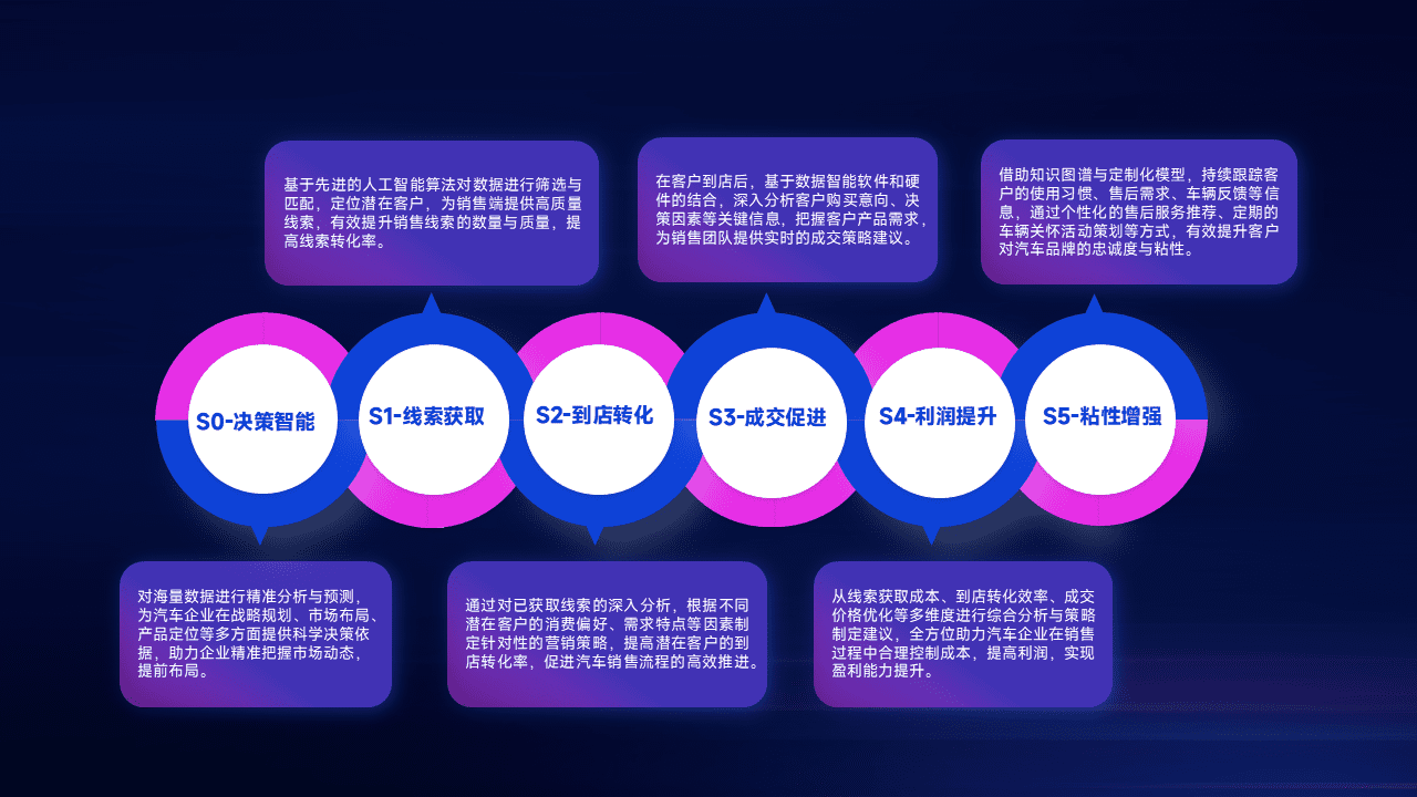 通过拓宽潜在客户来源、、、优化线索分配并提高到店转化率,,,以增强销售效率。。同时,,,利用线索数据不断优化分析模型,,,,有效提升转化率,,,,扩大营销影响力。。。。